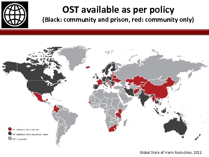 OST available as per policy (Black: community and prison, red: community only) Global State of Harm Reduction, 2012