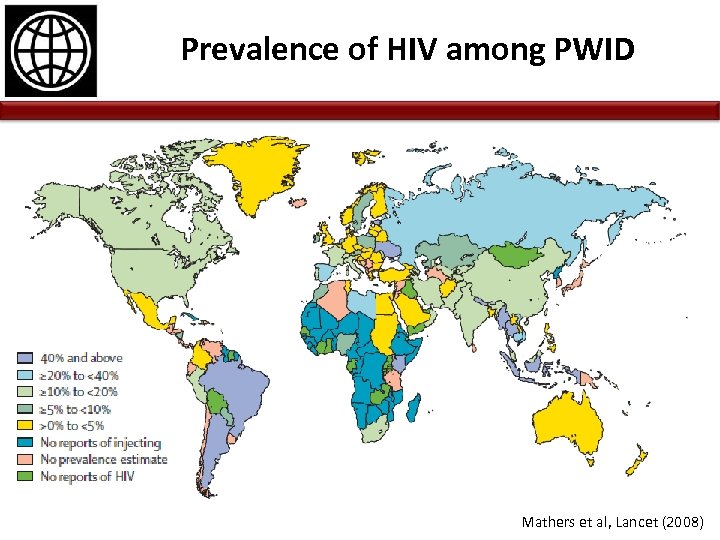 Prevalence of HIV among PWID Mathers et al, Lancet (2008)