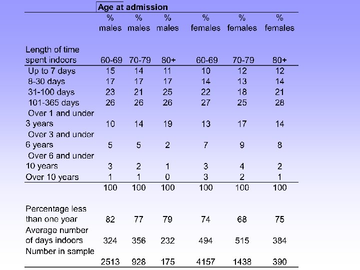 Summary and conclusion: • Multi-functional over entire period • Part of elderly survival strategy in last years • There is a chronology of use by elderly, more commonly used in some decades than others • Particularly frequently experienced by elderly females • Variety of experience of elderly usage