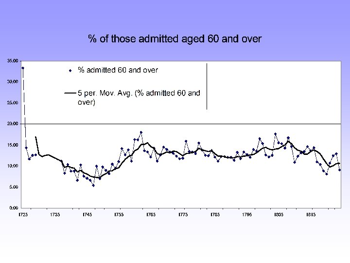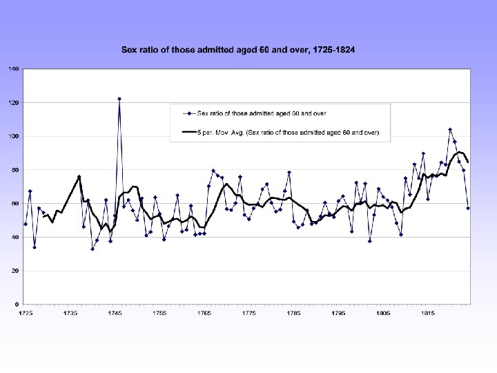 The elderly in the eighteenth century • Role of institutional care • Extent of such care amongst elderly populations: hospice or refuge? • London’s atypicality in nineteenth century – Large institutions – High proportions of elderly females in workhouse – High proportion of the elderly in 1851