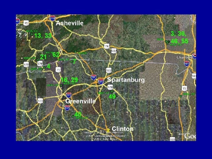 Local Antenna Conditions • Greenville stations are 20 -80 miles away, several in the NC mountains. • A good roof antenna is needed. – Must be able to receive both high-VHF (7 -13) and UHF (14 -51) channels. • A rotator and pre-amplifier are helpful. • A good setup can also receive some stations from Columbia and Charlotte.