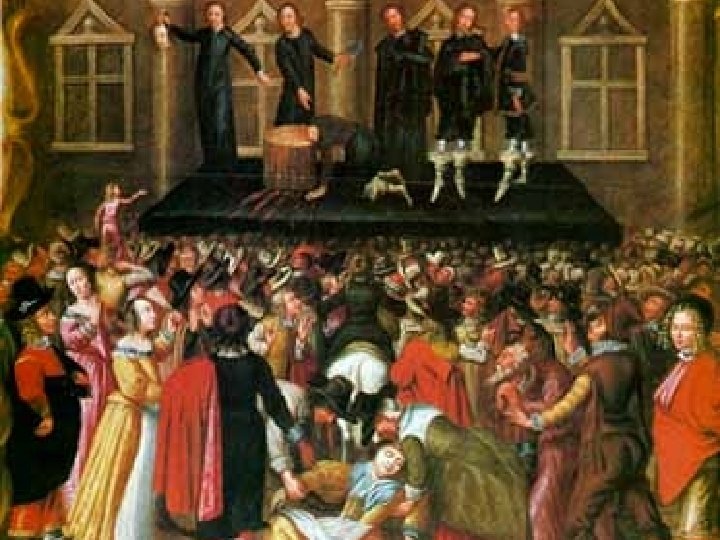 Civil War n War between Cavaliers (Royalists) vs Roundheads (supporters of Parliament) lasted for 5 years n Roundheads found a strong leader in Oliver Cromwell; Cromwell and Roundheads won & behead the king (1 st public execution of a king)
