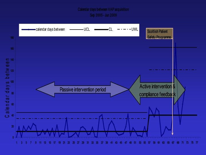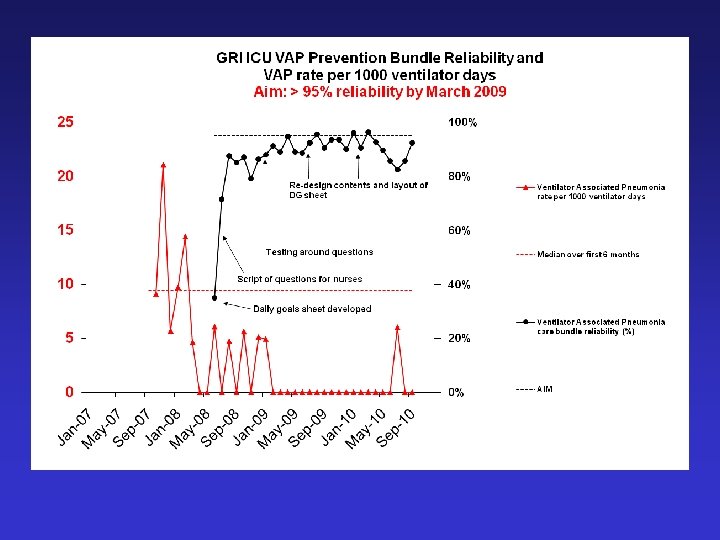 VAP - eliminated • VAP still here • So rare that we can now discuss the reasons for individual cases • Huge reduction in the problem • Scottish ICU clinicians and SPSP/IHI • Effective healthcare does not need to cost more