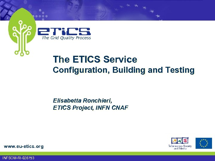 The ETICS Service Configuration, Building and Testing Elisabetta Ronchieri, ETICS Project, INFN CNAF www. eu-etics. org INFSOM-RI-026753