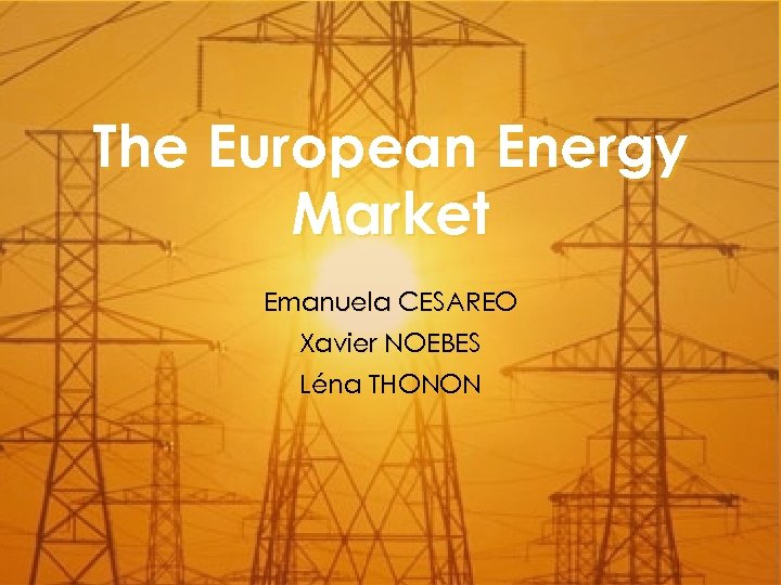 The European Energy Market Emanuela CESAREO Xavier NOEBES Léna THONON