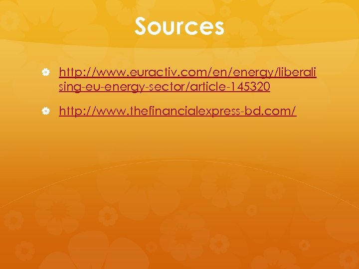 Sources http: //www. euractiv. com/en/energy/liberali sing-eu-energy-sector/article-145320 http: //www. thefinancialexpress-bd. com/