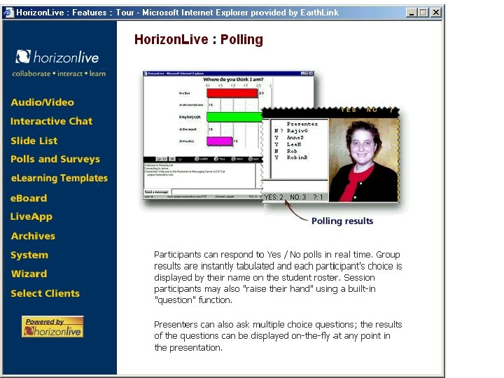 4. E-Learning Content Ø Ø Ø Capella Click 2 Learn Colleges/Universities Digital Think Docent, Inc. Eduprise Element K e. Mind. com e. Socrates Execu. Train Jones International University Knowledge. Net Ø Knowledge Planet Ø Mentergy--includes Learn. Linc products Ø Microsoft Training and Service Ø Netg Ø Prime Learning Ø Saba Ø Smart Force Ø Thin. Q (i. e. , Trainingnet) Ø Train. Seek Ø Vcampus Ø Viviance New Education Ø Walden Univ. /Institute