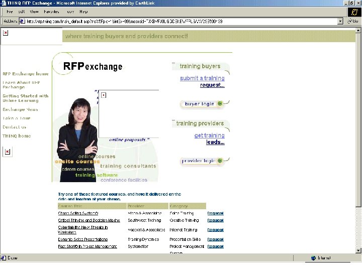 Software and hardware customers e-learn the ropes Scott Tyler Shafer, Red Herring, Feb. 13, 2001 • “Since Cisco is looking to educate 800, 000 people globally, the classroom model wasn’t feasible. …Cisco selected and certified 120 partner training companies…” • “Oracle says it has 1, 000 developers signing up every day to take courses over the company’s Web Oracle Network (OLN)…estimates it will train 2. 5 million engineers in 2001. ” (this was only 500, 000 in 2000)