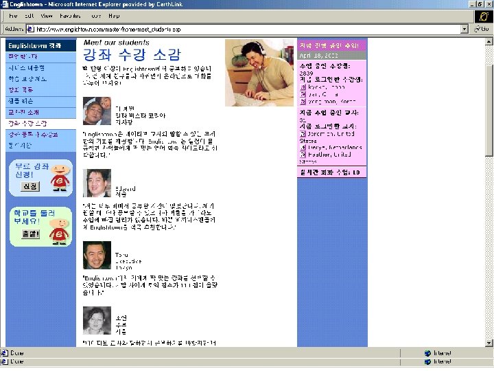 Typical Features (e. g. , Englishtown (millions of users from over 100 countries) • • • Online Conversation Classes Experienced Teachers (certified ESL) Expert Mentors Peer-to-Peer Conversation Private Conversation Classes Placement Tests Personalized Feedback University Certification Self-Paced Lessons