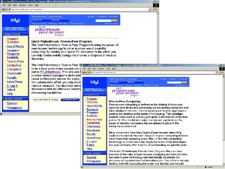 10. Peer-to-Peer Collaboration (Group-enabled Project Management) Possibilities: 1. Data Sharing (www. napster. com) 2. Resource Sharing (www. intel. com/cure/overv iew. htm) 3. Workgroup Collaboration (www. groove. net)
