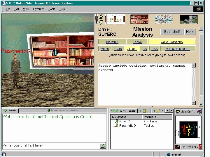 Possibilities for Corporate Training • Virtual seminars and presentations, with distant colleagues interacting within a virtual conference hall • Demonstration of new building designs that people can explore, discuss and modify • Demonstrations of processes or models that are difficult to understand with static graphs/charts