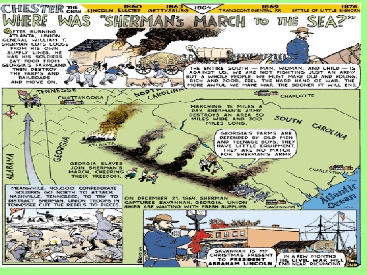 Significance: The siege of Atlanta by General Sherman ended with the burning of the city by Union troops. After burning the city, Sherman began his famous march to the sea, during which his troops looted and plundered their way across Georgia, destroying nearly everything in their path.