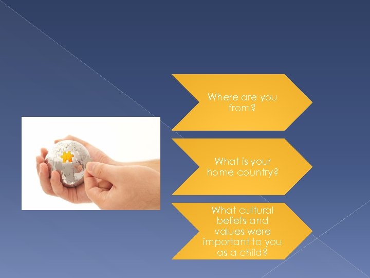 Where are you from? What is your home country? What cultural beliefs and values were important to you as a child?