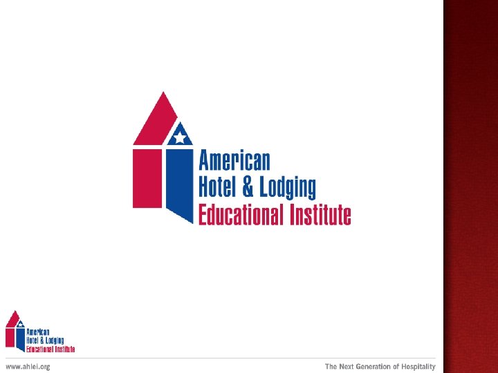 American Hotel & Lodging Educational Institute (AHLEI) • Founded in 1953 • Non-profit organization • World’s largest developer of training and development solutions for the hospitality industry • 45 member board of trustees • +350 products in a variety of training media (online, video, print, distance learning)