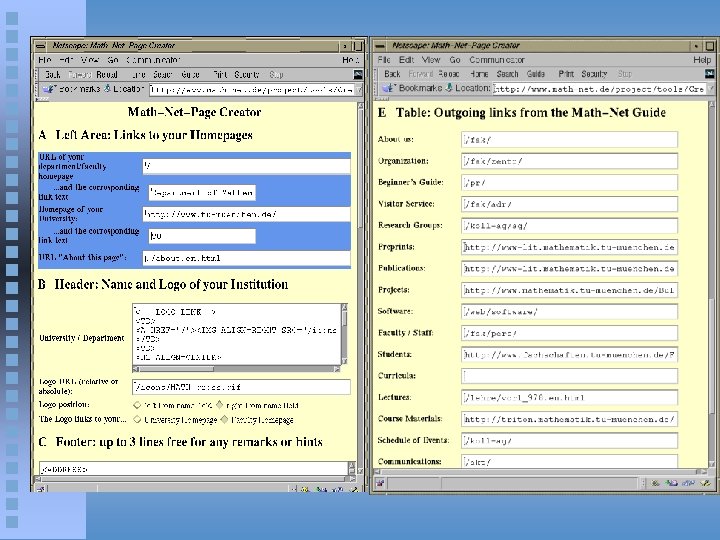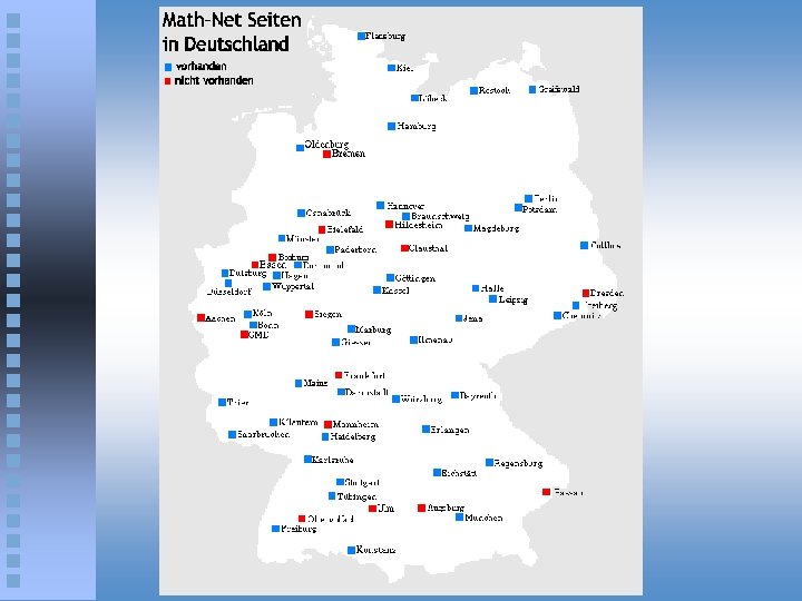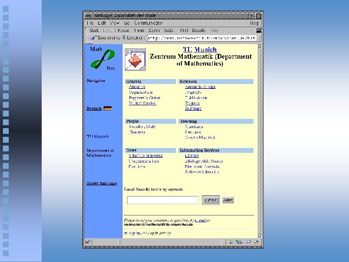 Math. Net: A Network for Mathematics Prototype developed in Germany at Konrad-Zuse-Zentrum für Informationstechnik (ZIB) and several participating mathematical departments www. math-net. de Now to be extended to a worldwide system supported by the International Mathematical Union (IMU)