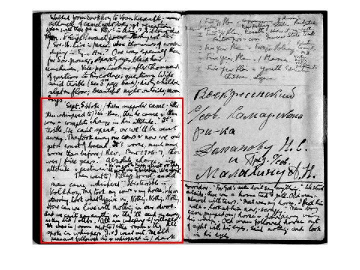 … think will increase the desire of the workers to work. But there have been too many wreckers, too many kulaks, who have been trying to influence the other peasants. Breakfasted, then sister of wife did algebra lesson. The Communists realised & admitted that there was no grain. That was ‘Bockrenchenka’ [? ] in the Black Earth region. Lower down it is much worse. Talked to all the people as I tramped along the railway track. Ravens or crows (with…