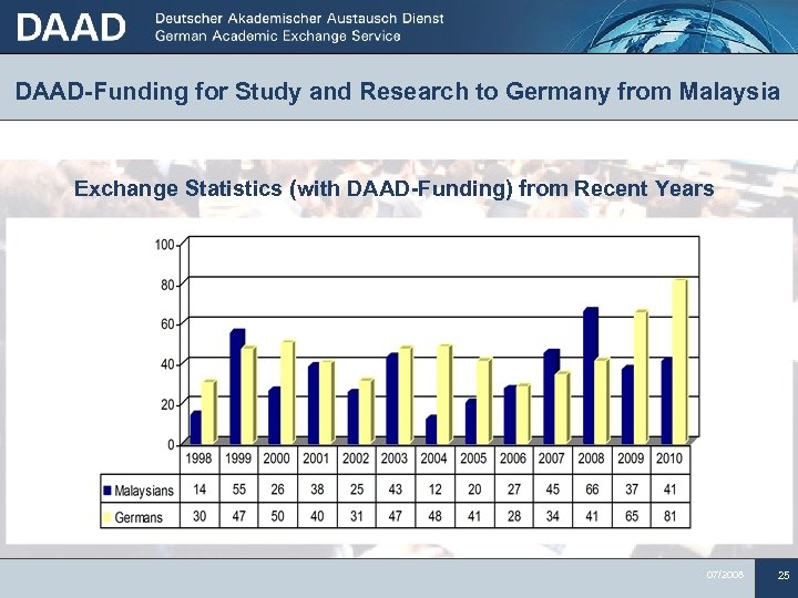 DAAD-Funding for Study and Research to Germany from Malaysia Exchange Statistics (with DAAD-Funding) from Recent Years 07/2008 25