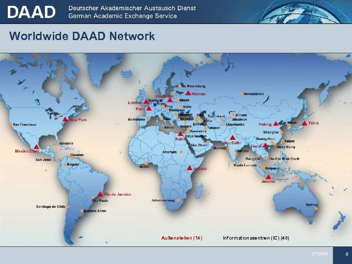 Worldwide DAAD Network Außenstellen (14) Informationszentren (IC) (48) 07/2008 8