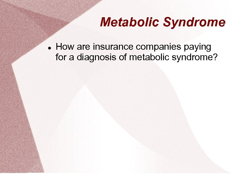 Metabolic Syndrome How are insurance companies paying for a diagnosis of metabolic syndrome?