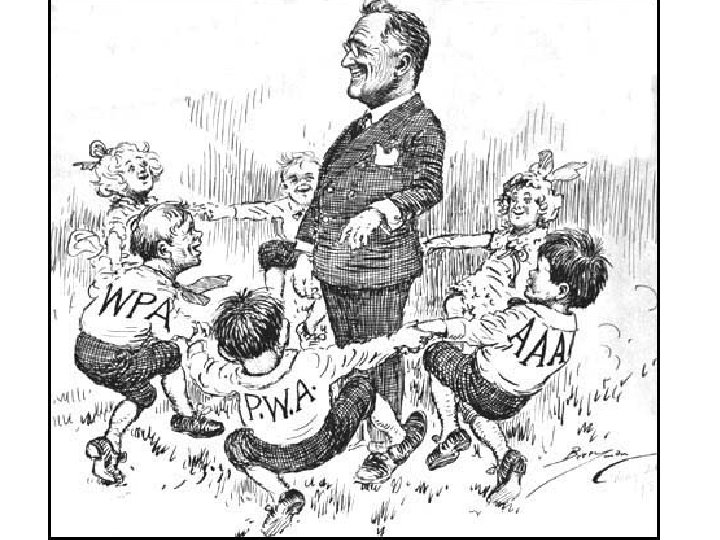 Housing & Social Security 1. To speed recovery and better homes, FDR set up the Federal Housing Administration (FHA) in 1934 to stimulate the building industry through small loans to householders. – It was one of the “alphabetical” agencies to outlast the age of Roosevelt. 2. Congress bolstered the program in 1937 by authorizing the U. S. Housing Authority (USHA), designed to lend money to states or communities for low-cost construction. – This was the first time in American history that slum areas stopped growing. 3. The Social Security Act of 1935 was the greatest victory for New Dealers, since it created pension and insurance for the oldaged, the blind, the physically handicapped, delinquent children, and other dependents by taxing employees and employers. – Republicans attacked this bitterly, as such government-knows-best programs and policies that were communist leaning and penalized the rich for their success. They also opposed the pioneer spirit of “rugged individualism. ”