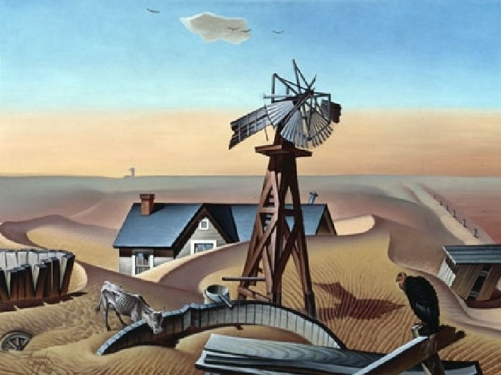 Dust Bowls and Black Blizzards • 1. After the drought of 1933, furious winds whipped up dust into the air, turning parts of Missouri, Texas, Kansas, Arkansas, and Oklahoma into the “Dust Bowl” and forcing many farmers to migrate west to California This disaster inspired Steinbeck’s classic The Grapes of Wrath. The following factors contributed to the Dust Bowl: Dry farming techniques 2. drought 3. soil erosion 4. the cultivation of marginal farmlands on the Great Plains.