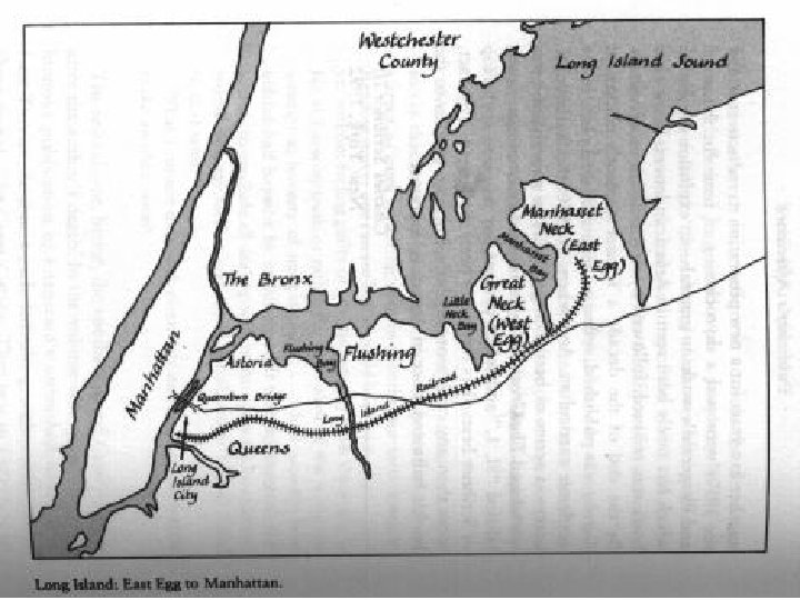 Geography Throughout the novel, places and settings epitomize the various aspects of the 1920 s American society that Fitzgerald depicts. East Egg represents the old aristocracy West Egg the newly rich The valley of ashes the moral and social decay of America New York City the uninhibited, amoral quest for money and pleasure The East is connected to the moral decay and social cynicism of New York The West (including Midwestern and northern areas) is connected to more traditional social values and ideals Nick’s analysis in Chapter 9 of the story he has related reveals his sensitivity to this dichotomy: though it is set in the East, the story is really one of the West, as it tells how people originally from west of the Appalachians (as all of the main characters are) react to the pace and style of life on the East Coast