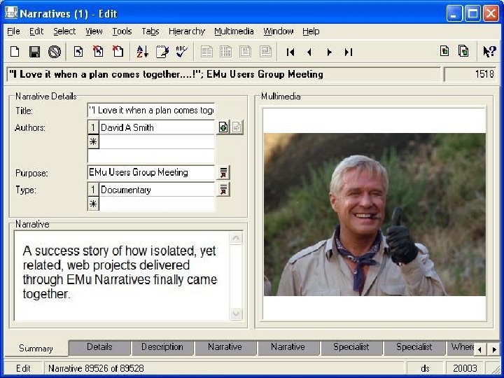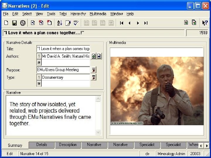 Navigation Party record Sites record Stratigraphy record Taxonomy record Collection Event record Parent narrative ACTIVE NARRATIVE Child narrative Associated narrative