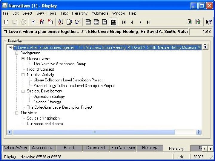 The Vision • Empower science staff to capture their specialist knowledge about collections. • ‘One shoe fits all’. Single web template. – single implementation and easy to upgrade. • Real-time updates. • Link related collections across departments. • Search Interface in addition to browse • Improved navigation • Alternative methods of representing information