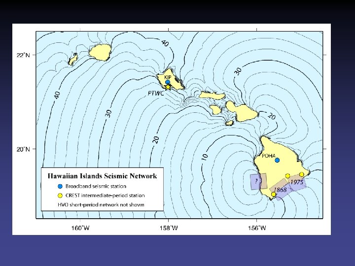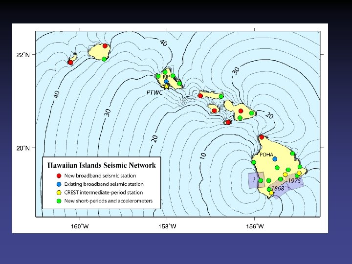 The Hawaiian Islands Seismic Network l l Funding requested by the President, recommended by House Committee on Science, included in Senate Bill 50, The Tsunami Preparedness Act. Funding l FY 05: $0. 5 million l FY 06: $1. 0 million l Maintenance in NWS budget Working Committee l Charles Mc. Creery (NOAA) l Harley Benz (USGS) l Robert Cessaro (NOAA) l Gerard Fryer (UHM) l Barry Hirshorn (NOAA) l David Oppenheimer (USGS) l Paul Okubo (USGS) Special thanks to l Senator Daniel Inouye l Jeff La. Douce, NOAA l Rhett Butler, IRIS l Kent Anderson, IRIS