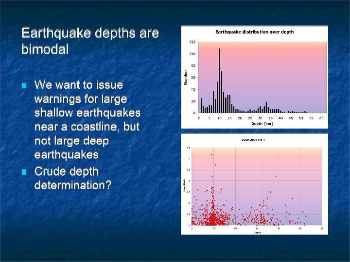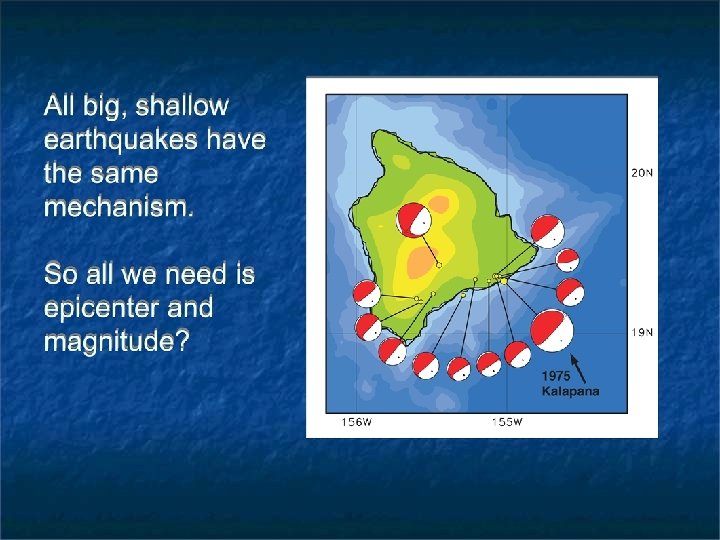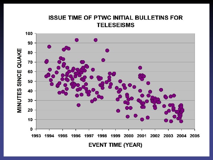 The Future? l PTWC is interested in more Interaction with the Seismological Community. l Held a Workshop in Ewa Beach, June 8 2005 with USGS and others to coordinate and plan out upgrade. l More staff to look at these problems soon. l Software: prototyping and testing EEW systems in Hawaii, in particular for the Local Earthquake/Tsunami problem.