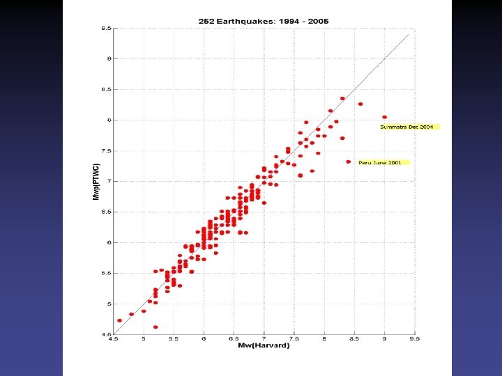 Mwp and Local Earthquakes l Mwp is limited by the trade off between the S-P travel time, and the source duration of the event. l Appears to work well at less than 5 degrees epicentral distance. Depending on the Mw and source length, Mwp provides an estimate that is low by an amount that decreases between 1 -5 degrees epicentral distance. l Will automate it for local earthquakes.
