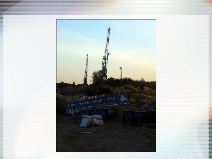 Gentrification in Partick • Glasgow Harbour Development • Luxury housing for 2000 residents “The city needs to offer more attractive family houses with gardens – ‘middle market’ as well as ‘starter’ homes – to persuade people to stay who would otherwise move beyond the city boundary. ” (Glasgow City Council, 2003)