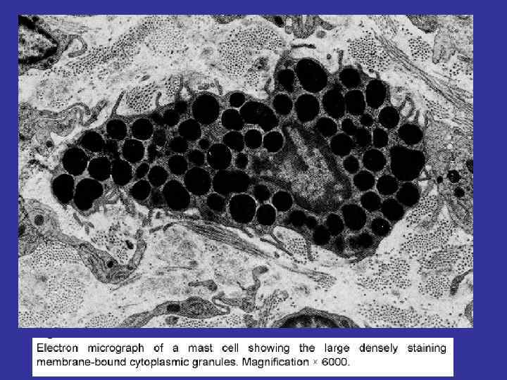 MAST CELLS FUNCTIONS: DEGRANULATION (EXCRETION OF THE NUMEROUSE BAS): ØHEPARIN, ØHISTAMIN, ØSEROTONIN, ØCYTOKINES, ØPROSTAGLANDINES N & LEUCOTRIENS