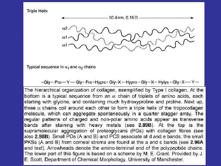 THE STAGES OF THE COLLAGEN FIBERS CREATION INTRACELLULAR PROCESS ORGANELLS GENE TRANSCRIPTION IN M-RNA SYNTESIS NUCLEUS THE ALFA-CHAIN SYNTESIS R-EPR PROLINE AND LISINE HYDROLISATION R-EPR PROCOLLAGEN SYNTESIS R-EPR PPACKAGE TO THE TRANSPORT VESICLES AND EXOCITOSIS Golgi complex EXTRACELLULAR PROCOLLAGEN - TROPOCOLLAGEN – FIBRILLS – FIBERS PLASMALEMMA