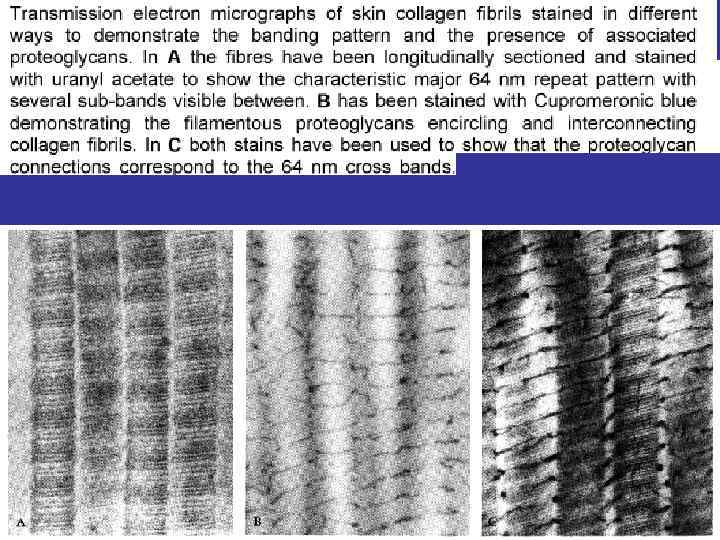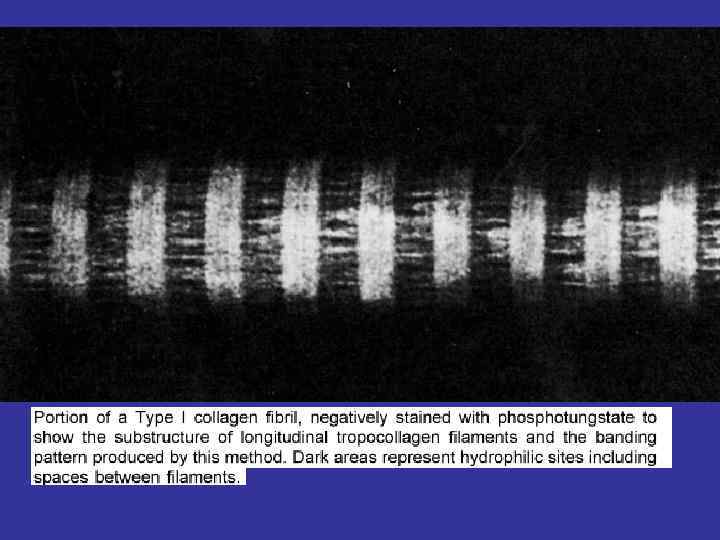 striation The reason is the special packing of the tropocollagen corpuscles. There are spaces in between newborn molecules. The corpuscles of newborn protofibrils are moved. Physical characteristics Too strong, resistant and hydrophilic fibers.
