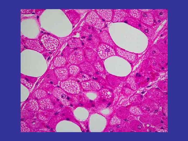 Adipose tissue White adipose tissue Brown adipose tissue Every where Interscapular area, around the kidney, thyroid gland. The newborn organism most reach in this type of the adipose tissue Cells At the cytoplasm – one big droplet of the fat. The nucleus and the organells are decentralized. In between fat lobules – the loose irregular connective tissue At the cytoplasm – several small droplets of the fat. The nucleus and the organells are placed at the center. Too many big mitochondria. But an energy utilizing for the warming of the organism, and not stored as ATP. The color caused by numerous cytochromes.