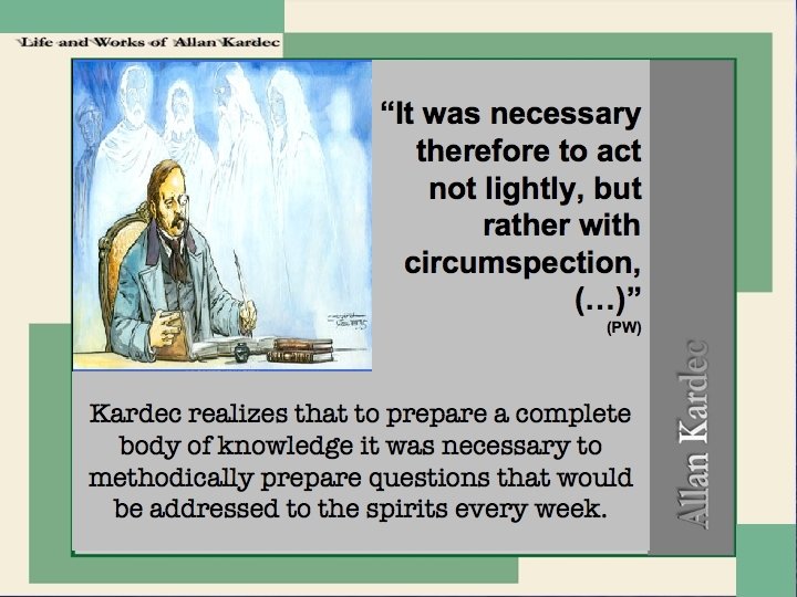 Carlotti Friedrich Tiedeman - professor of zoology and anatomy at the Heidelberg Rene Taillandier - Rivail’s student and member of the Science Academy Victorien Sardou - dramaturge pictographic medium Camille Flammarion - Scientist astrophysicist They asked Rivail to analyze and to organize over 50 notebooks of communications received by the mediums.