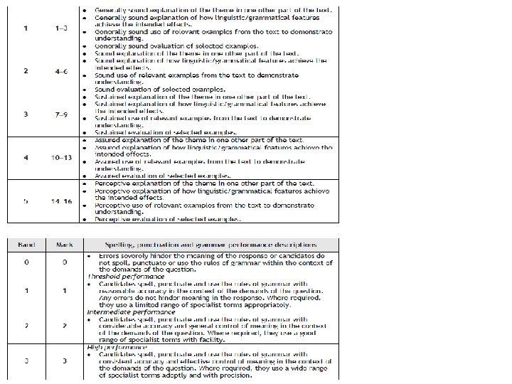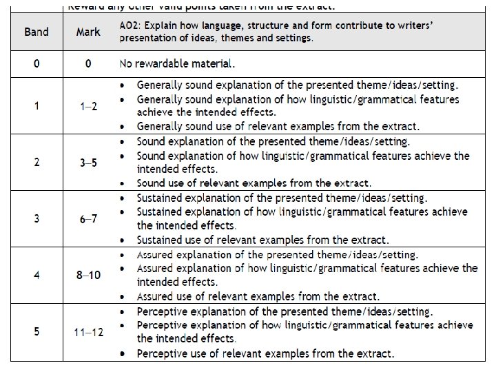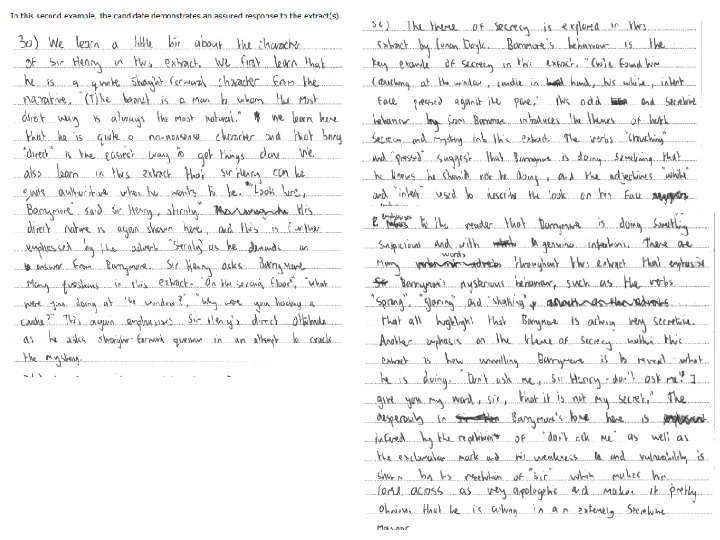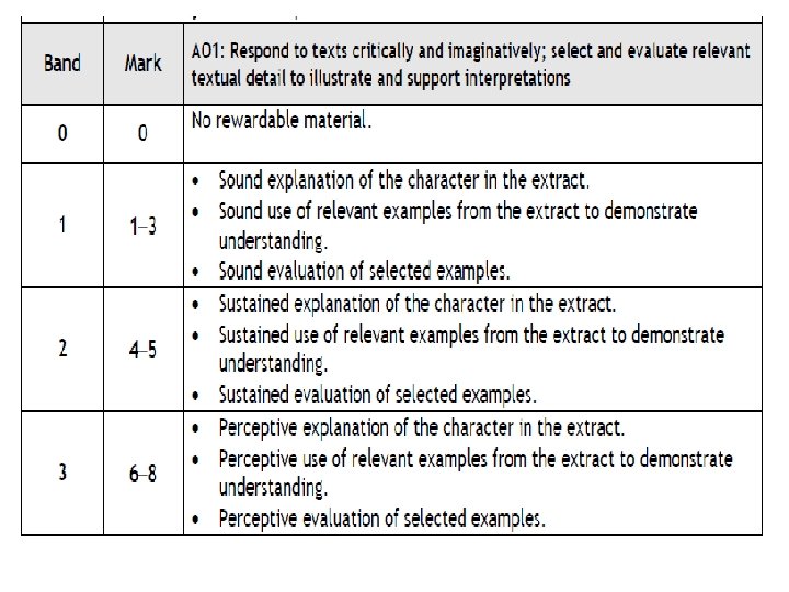 How do you answer Qa? • • • 15 min. 1 -2 sides A 4. Make 6 -8 different points about the character. Use more than one quote for each point- aim for 10 -15. Use short embedded quotes. Combine quick point and evidence in one sentence. Select quotes from different parts of the text to support your points. Look for layers of meaning and say more than one thing about a quote: “It also suggests that…” Go beyond the obvious and keep your comments perceptive. Comment on how the structure (AOI)of the text is used to reveal details about the character: “At the start of the extract…Further on…By the end…this links to…” No language analysis! This suggests…The reader will infer that…The inference here is that…The reader will deduce…