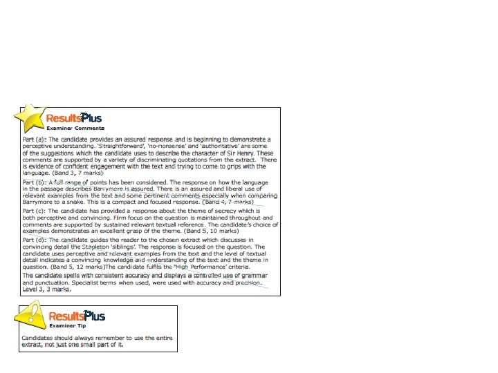 10 En 2 Timed Practice Feedback QA: Did you only use quotes directly about Sir H’s speech & actions? Task: What does Barrymore’s speech/actions and Watson’s narrative show us about Sir H’s character? QA: Were you able to make a structure point? Task: make a language point: start / end / within paragraph/ between character = meaning / effect. QB: It’s the language question! No language terms = you will be penalised! Task: Annotate all your quotes with language terms. Were your quotes too long? Task: any quote of 4+ words circle the key words you should have embedded analysed in detail.