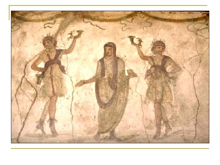 Extra Information n n Belonged to Aulus Vettius Conviva and Aulus Vettius Restitutus (from graffittii) – freedmen Graffittii says Vettius was an Augustalis (priesthood open only to freedmen) No tablinum in house – no need for study to receive clients as a freedman could not hold political office – could not be a patronus Probably became wealthy by making wine (hence painting referring to Dionysus…? ) Lots of cupids w grapes, some making wine