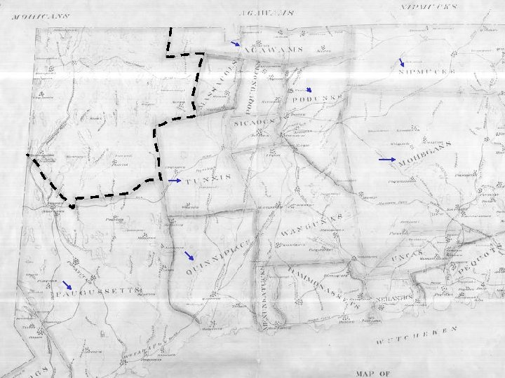 Meanings of Indian Names • • • Pok-a-no-ket: “at or near the cleared lands. ” A-bess-ah: “clam bake place” Mitt-in-eag: “abandoned fields” Eack-honk: “the end of the fishing place” Simpaug: “beaver pond” Aspetuck: “at the high place. ” Ousatonic: “land beyond the mountains” Waramaug: “good fishing place” Pequonnock: “a small plantation” Mash-an-tucket: “in the little place of much wood”