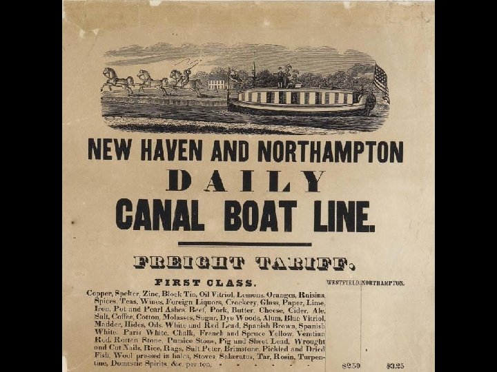 Impressive Numbers! Four million pounds of merchandise were shipped every month from New Haven. At three every afternoon, packet boats left the Elm City docks in New Haven, making the trip to Northampton in the unheard-of time of twentyfour hours. The age of canals had arrived in Connecticut.