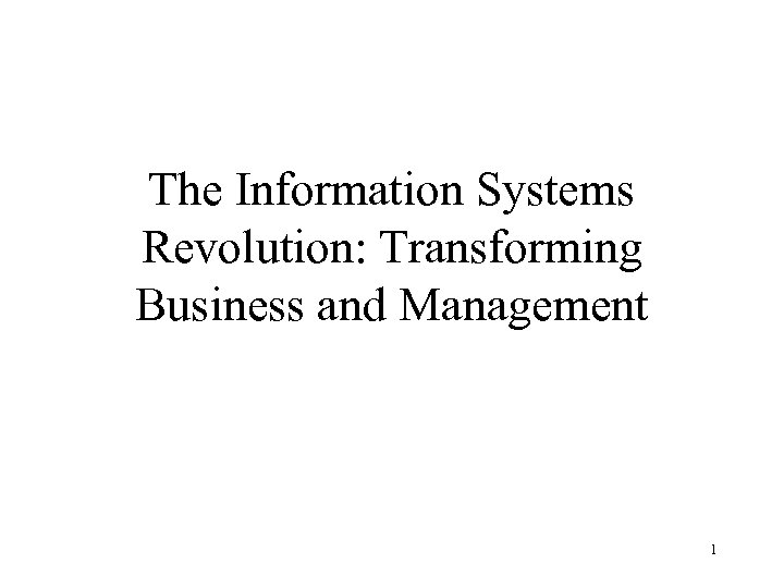 The Information Systems Revolution: Transforming Business and Management 1
