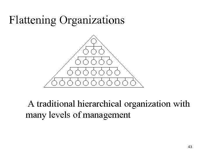 Flattening Organizations A traditional hierarchical organization with many levels of management 43