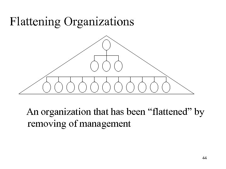Flattening Organizations An organization that has been “flattened” by removing of management 44