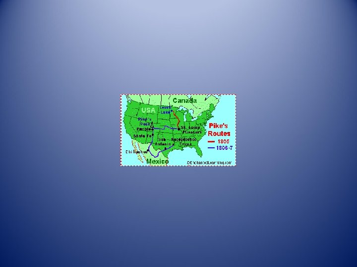 Pike • Pike ends up going southward into Spanish territory. • He gets arrested and all of his maps get taken. • He hides a map in the barrel of his gun. • He ends up dying in War of 1812.