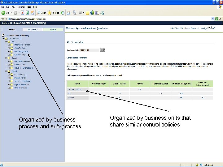 ACL Services Ltd. Copyright © 2008 ACL Services Ltd. Organized by business process and sub-process Organized by business units that share similar control policies