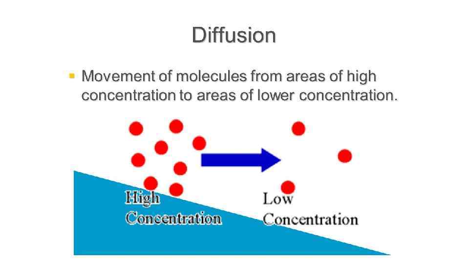 Sample diffusion • Many molecules pass into and out of cells by diffusion, for example: • Oxygen • CO 2 • Water