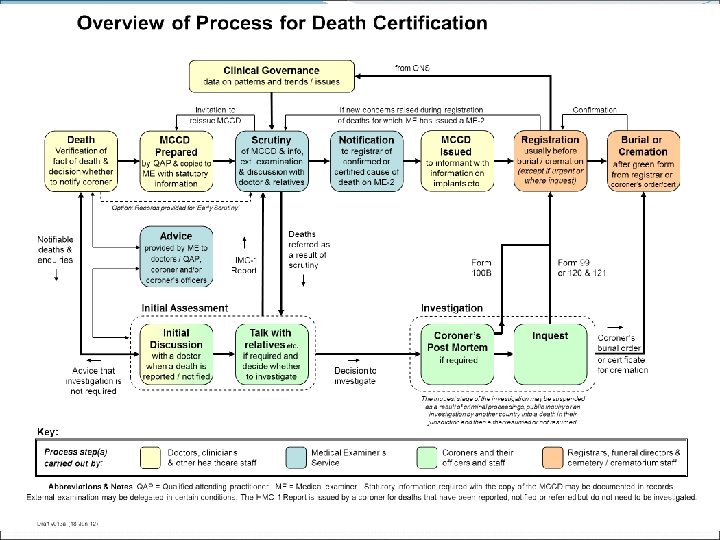 Swift B, West K. J Clin Pathol 2002; 55: 275 -9. Death certification: an audit of practice entering the 21 st century. 1000 ‘natural’ deaths. “Only 55% of certificates were completed to a minimally acceptable standard” Fernando D, Oxley JD & Nottingham J. J Clin Pathol 2012; 65: 94951. Death certification: do consultant pathologists do it better? “Using the Office for National Statistics guidelines, the authors found that only 56% of the certificates were appropriately completed. ”