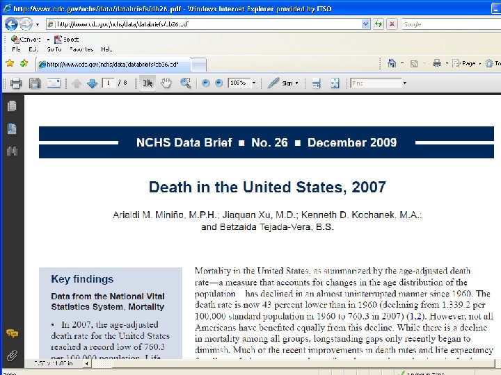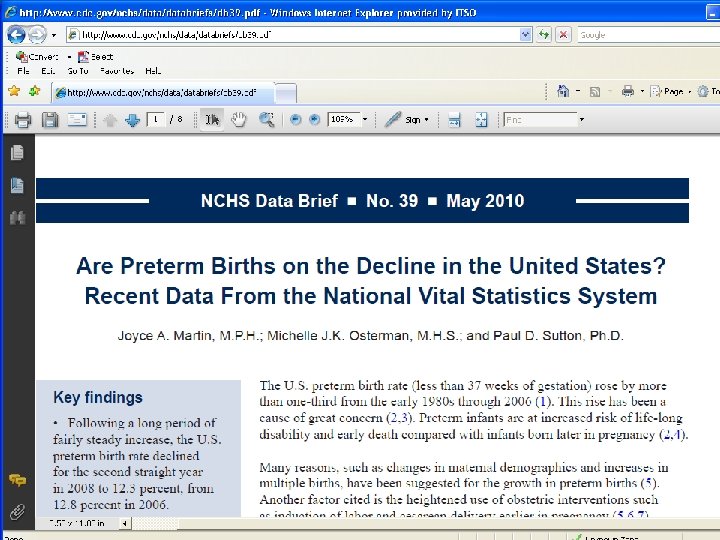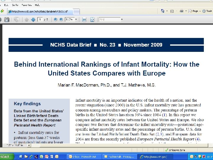 The First Sparklies • Data briefs • Are preterm births on the decline in the US? • International Ranking • Death in the United States, 2007